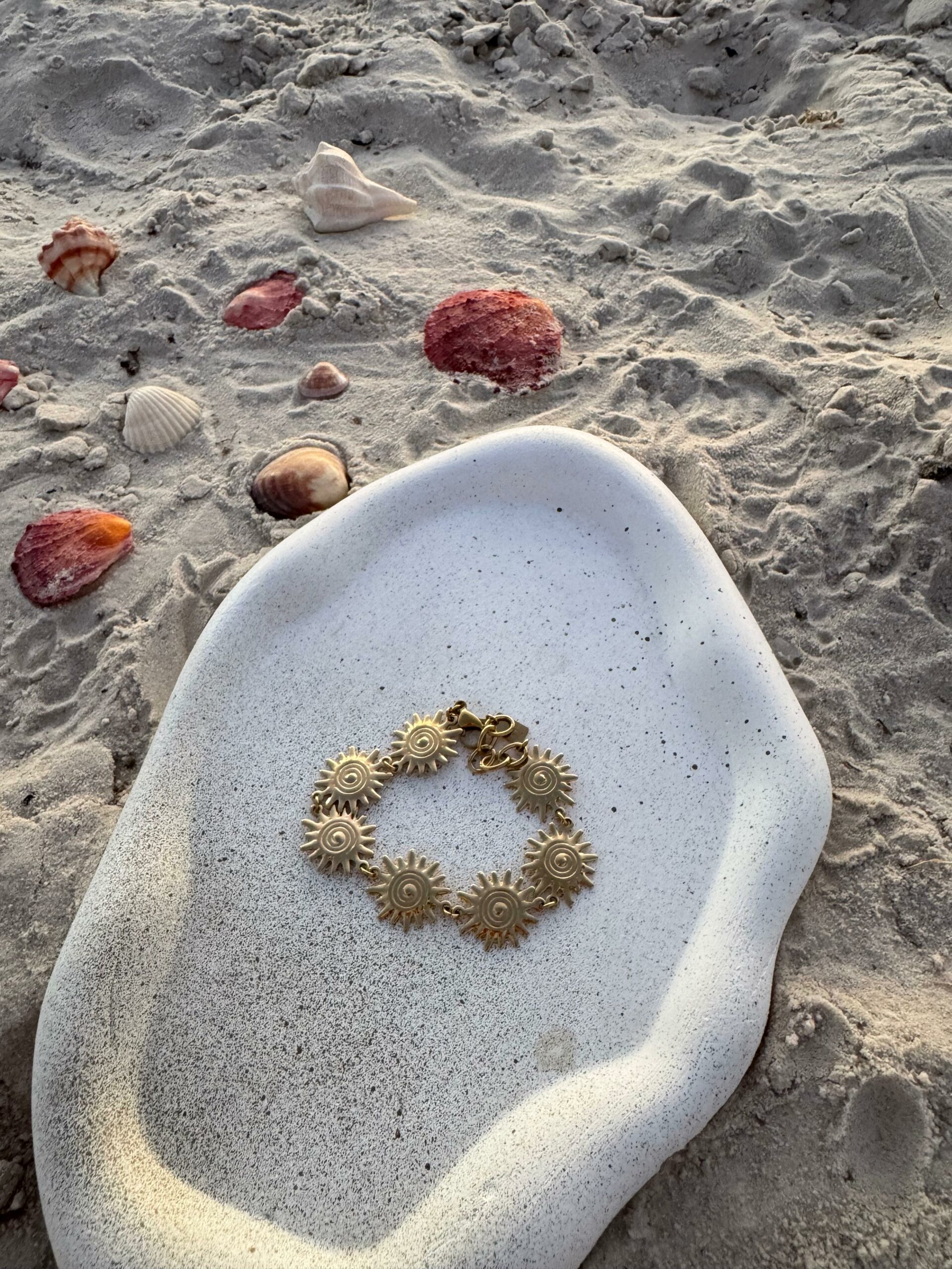 Bijou lumineux composé d’une série de soleils dorés reliés par une chaîne fine pour un éclat chaleureux et raffiné.