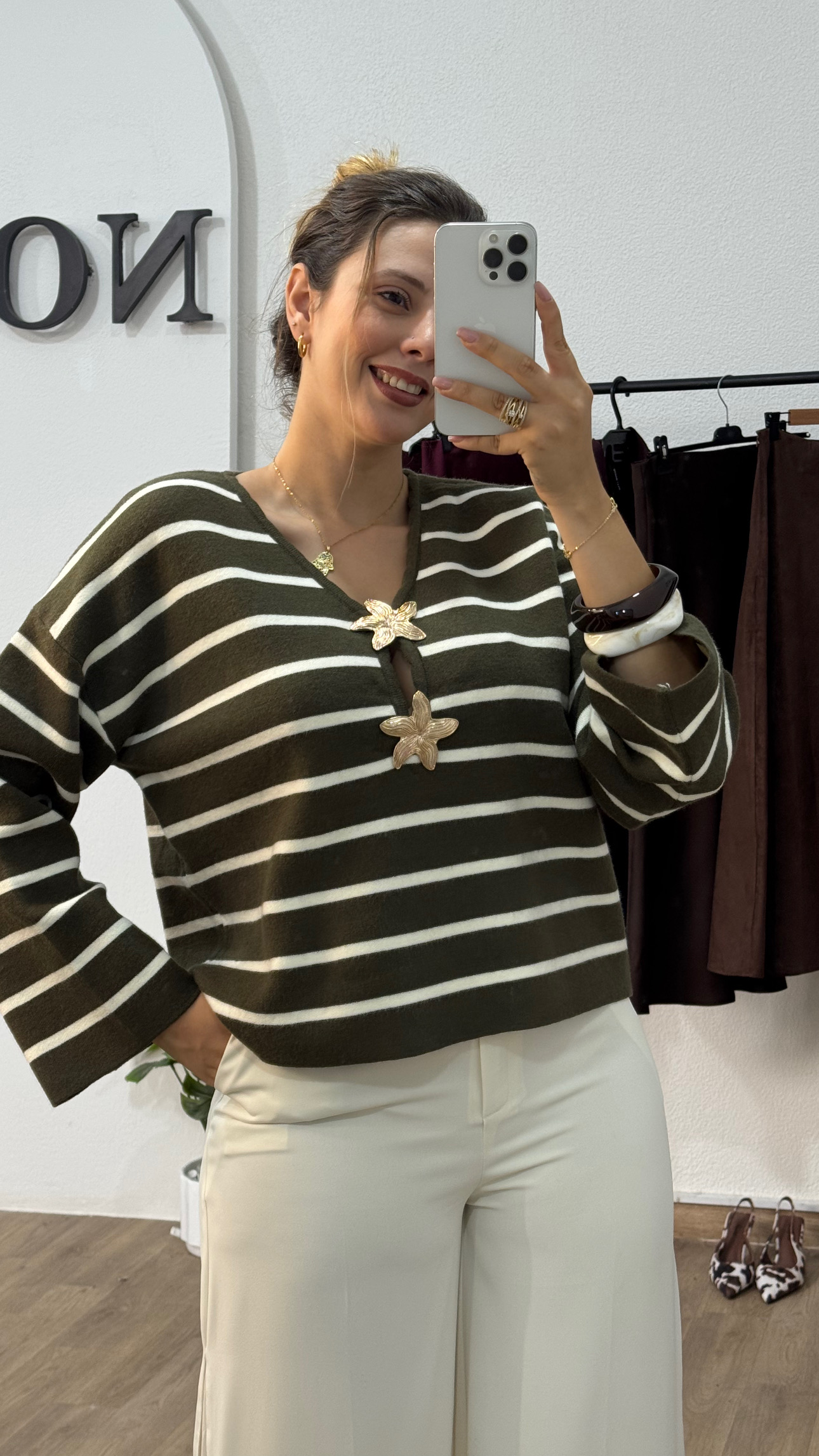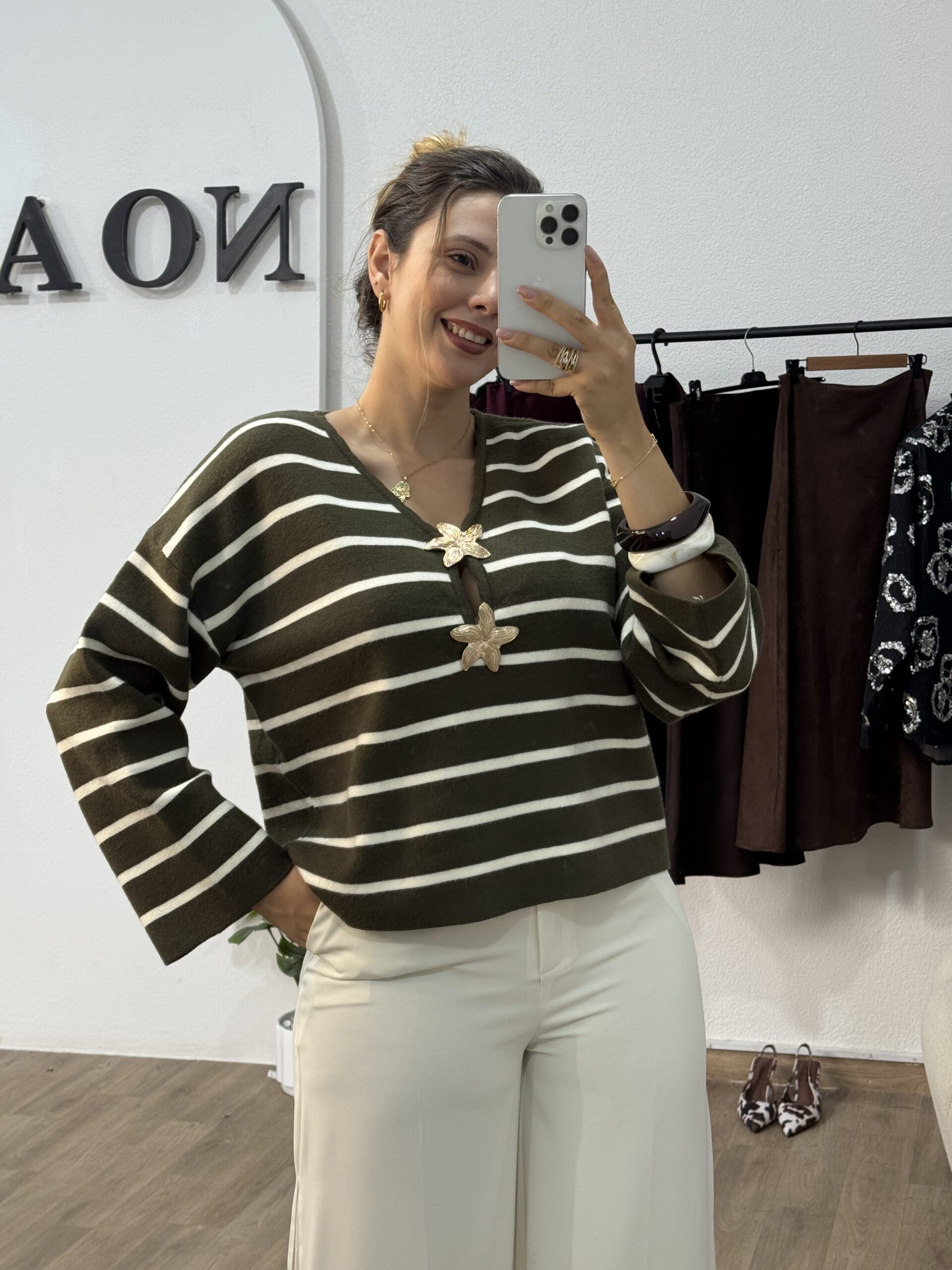 Pull Rayé Vert Olive