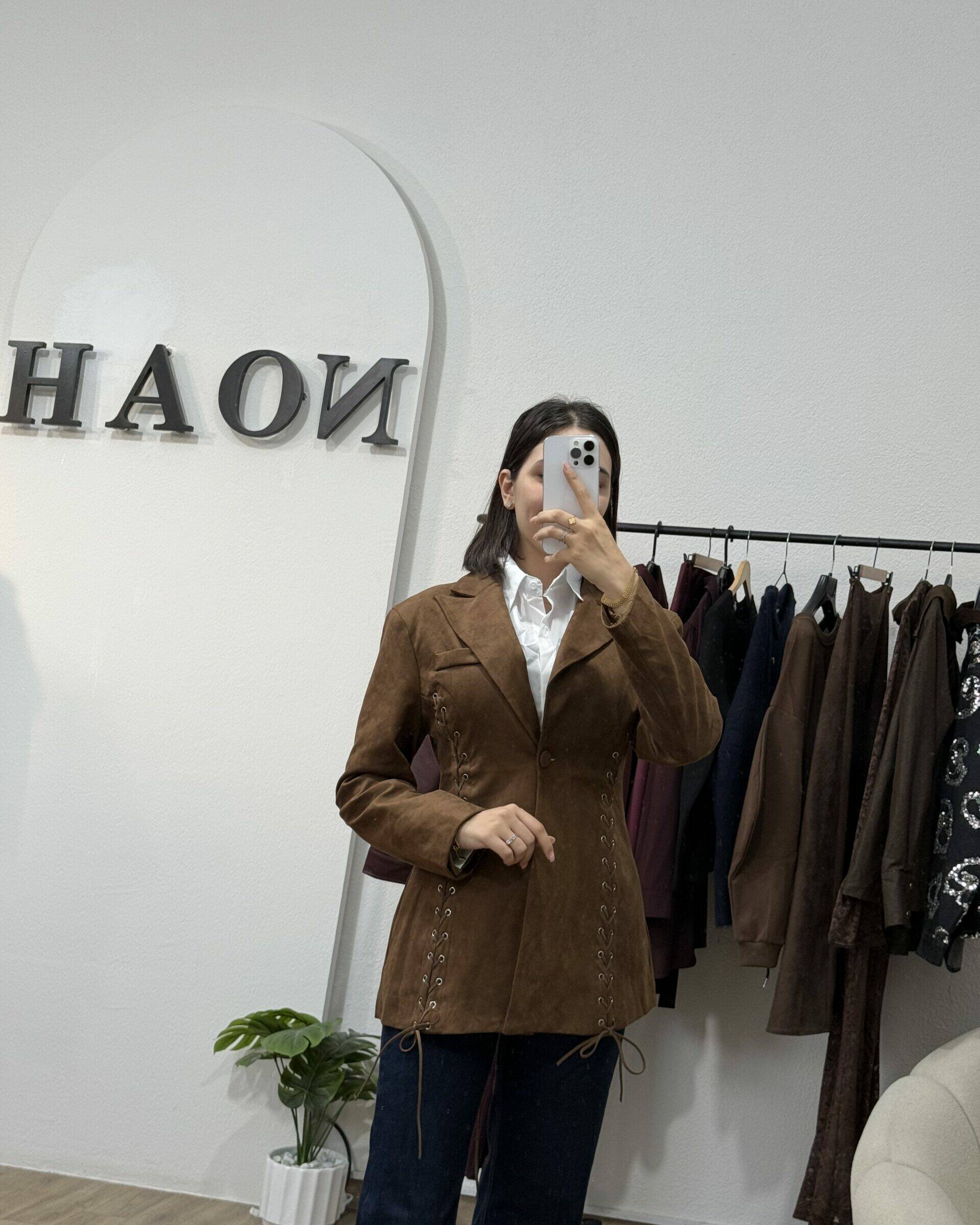 Le prix initial était : 165,000 TND.99,000 TNDLe prix actuel est : 99,000 TND.Veste Suédine Chocolat